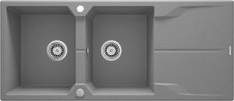 Deante ANDANTE ГРАНИТНАЯ РАКОВИНА С 2 ЧАШАМИ С СУШИЛКОЙ 1160x500x224, 3,5'', СЕРЫЙ МЕТАЛЛИЧЕСКИЙ, С ЭКОНОМЬЮЩИМ ПРОСТРАНСТВОМ
