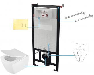 Deante ANEMON НАСТЕННЫЙ ТУАЛЕТ БЕЗ ОБОДКА + СИДЕНЬЕ ДЛЯ ТУАЛЕТА + НАСТЕННАЯ СКРЫТАЯ СИСТЕМА + КНОПКА УПРАВЛЕНИЯ SLIM GOLD - NEW