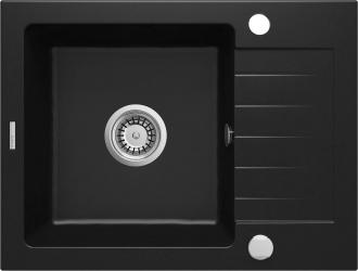 Deante ГРАНИТНАЯ РАКОВИНА ZORBA 1-ЧАША С КОРОТКОЙ СУШКОЙ 580x440x164, 3,5'', NERO, С ФИТИНГАМИ