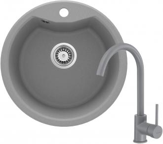 Deante КОМПЛЕКТ: ГРАНИТНАЯ МОЙКА ZRS_S803 + СМЕСИТЕЛЬ ДЛЯ МОЙКИ С U-образным изливом BEU_S62M + ФИТИНГИ, СЕРЫЙ