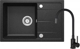 Deante КОМПЛЕКТ: МОЙКА ГРАНИТ ZRD 2113 ГРАФИТ + СМЕСИТЕЛЬ ДЛЯ МОЙКИ BME 024N ХРОМ + ФИТИНГИ