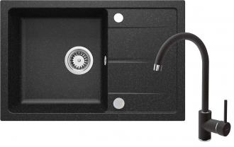 Deante КОМПЛЕКТ: МОЙКА ГРАНИТ ZRD_2113 + СМЕСИТЕЛЬ ДЛЯ МОЙКИ С U-образным изливом BEN_262M + ФИТИНГИ, ГРАФИТ