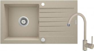 Deante НАБОР: ГРАНИТНАЯ МОЙКА ZQZ_7113 + СМЕСИТЕЛЬ ДЛЯ МОЙКИ С U-образным изливом BEN_762M + ФИТИНГИ, ПЕСЧАНЫЙ