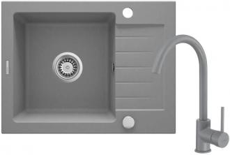 Deante НАБОР: ГРАНИТНАЯ МОЙКА ZQZ_S11A + СМЕСИТЕЛЬ ДЛЯ МОЙКИ С U-образным изливом BEU_S62M + ФИТИНГИ, СЕРЫЙ МЕТАЛЛИК