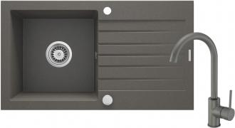 Deante НАБОР: ГРАНИТНАЯ МОЙКА ZQZ_T113+СМЕСИТЕЛЬ ДЛЯ МОЙКИ С U-образным изливом BEN_T62M+ФИТИНГИ, АНТРАЦИТОВЫЙ МЕТАЛЛИЧЕСКИЙ