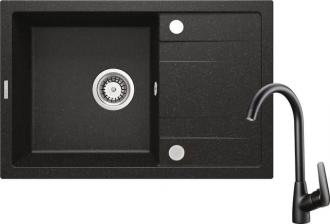 Deante НАБОР: ГРАНИТНАЯ МОЙКА ZRC_2113 + СМЕСИТЕЛЬ ДЛЯ МОЙКИ NERO С U-образным изливом BMO_N62M + ФИТИНГИ, ГРАФИТ