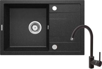 Deante НАБОР: ГРАНИТНАЯ МОЙКА ZRC_2113 + СМЕСИТЕЛЬ ДЛЯ МОЙКИ С U-образным изливом BEN_262M + ФИТИНГИ, ГРАФИТ