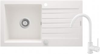 Deante НАБОР: ГРАНИТНАЯ РАКОВИНА ZQZ_A113+СМЕСИТЕЛЬ ДЛЯ РАКОВИНЫ С U-образным изливом BEN_A62M+ФИТИНГИ, АЛАБАСТР