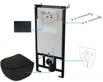 Deante PEONIA NERO НАСТЕННЫЙ ТУАЛЕТ БЕЗ ОБОДКА + СИДЕНЬЕ + НАСТЕННАЯ СКРЫТАЯ СИСТЕМА + КНОПКА УПРАВЛЕНИЯ SLIM NERO