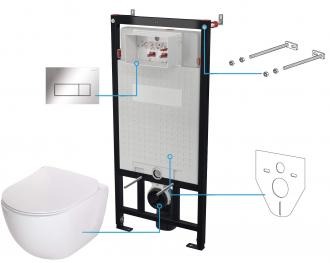 Deante PEONIA НОВЫЙ НАСТЕННЫЙ ТУАЛЕТ БЕЗ ОБОДКА + СИДЕНЬЕ ДЛЯ ТУАЛЕТА + НАСТЕННАЯ СКРЫТАЯ СИСТЕМА + КНОПКА УПРАВЛЕНИЯ SLIM CHROME