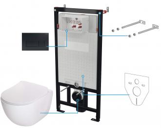 Deante PEONIA НОВЫЙ НАСТЕННЫЙ ТУАЛЕТ БЕЗ ОБОДКА + СИДЕНЬЕ ДЛЯ ТУАЛЕТА + НАСТЕННАЯ СКРЫТАЯ СИСТЕМА + КНОПКА УПРАВЛЕНИЯ SLIM NERO