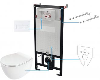 Deante SILIA НАСТЕННЫЙ ТУАЛЕТ БЕЗ ОБОДКА + СИДЕНЬЕ ДЛЯ ТУАЛЕТА + НАСТЕННАЯ СКРЫТАЯ СИСТЕМА + КНОПКА УПРАВЛЕНИЯ SLIM BIANCO