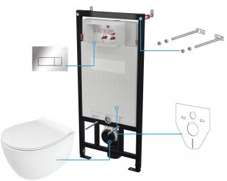 Deante SILIA НАСТЕННЫЙ ТУАЛЕТ БЕЗ ОБОДКА + СИДЕНЬЕ ДЛЯ ТУАЛЕТА + НАСТЕННАЯ СКРЫТАЯ СИСТЕМА + КНОПКА УПРАВЛЕНИЯ SLIM CHROME