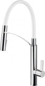 Deante СМЕСИТЕЛЬ ДЛЯ МОЙКИ GERBERA С U-образным изливом И ВЫДВИЖНЫМ ДУШЕМ, БЕЛЫЙ-ХРОМ