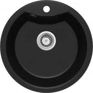 Deante SOLIS ГРАНИТНАЯ РАКОВИНА С 1 ЧАШЕЙ С ФЛАНЦЕМ, 480x194, 3,5'', NERO, С ФИТИНГАМИ