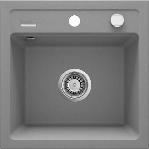 Deante ZORBA 1-ЧАШНАЯ ГРАНИТНАЯ МОЙКА БЕЗ СУШИЛКИ 440x440x184, 3,5'', СЕРЫЙ МЕТАЛЛИЧЕСКИЙ, С ФИТИНГАМИ