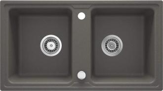 Deante ZORBA ГРАНИТНАЯ МОЙКА С 2 ЧАШАМИ БЕЗ СУШИЛКИ 780x435x180, 3,5'', АНТРАЦИТОВЫЙ МЕТАЛЛИЧЕСКИЙ, С ФИТИНГАМИ