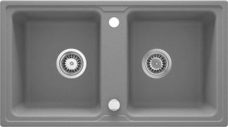 Deante ZORBA ГРАНИТНАЯ МОЙКА С 2 ЧАШАМИ БЕЗ СУШИЛКИ 780x435x180, 3,5'', СЕРЫЙ МЕТАЛЛИЧЕСКИЙ, С ФИТИНГАМИ